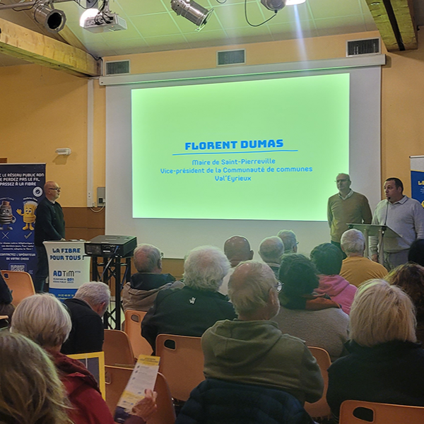 Retour sur la réunion publique d’ouverture commerciale des services fibre à Saint-Pierreville ! Mercredi 12 novembre à Saint-Pierreville, ADN et ADTIM FTTH organisaient une réunion publique d’ouverture commerciale pour les communes d’Albon-d’Ardèche, Gluiras, Issamoulenc, Marcols-les-Eaux, Saint-Etienne-de-Serre, Saint-Genest-Lachamp et Saint-Pierreville. A Albon-d’Ardèche, Gluiras, Issamoulenc, Marcols-les-Eaux, Saint-Etienne-de-Serre, Saint-Genest-Lachamp et Saint-Pierreville, plus de 1800 lignes de fibre optique…