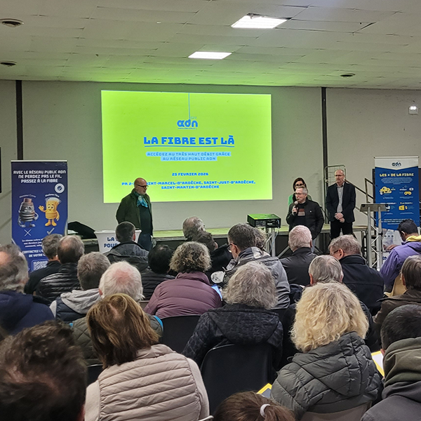 ACTUS Retour sur la réunion publique d’ouverture commerciale des services fibre à Saint-Marcel-d’Ardèche ! Mercredi 25 février à Saint-Marcel-d’Ardèche, ADN et ADTIM FTTH organisaient une réunion publique d’ouverture commerciale pour les communes de Saint-Just-d’Ardèche, Saint-Marcel-d’Ardèche et Saint-Martin-d’Ardèche. A Saint-Just-d’Ardèche, Saint-Marcel-d’Ardèche et Saint-Martin-d’Ardèche, près de 3 300 lignes de fibre optique sont déployées par ADN, autant