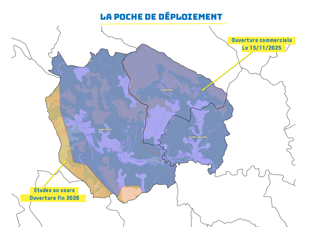 Les études se poursuivent sur un dernier secteur de Sablières déployé avec les communes de Montselgues et Malarce-sur-la-Thines. L’ouverture commerciale interviendra fin 2026 pour la trentaine de foyers concernés.
