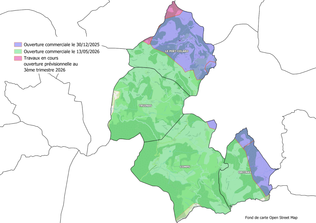 Depuis le 30 décembre 2025, la fibre est disponible sur les premiers secteurs du Poët-Célard et d’Orcinas.