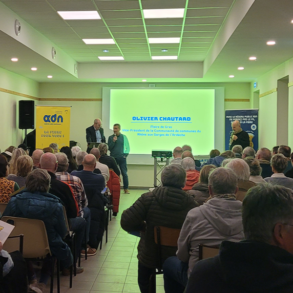 ACTUS Retour sur la réunion publique d’ouverture commerciale des services fibre à Gras ! Mercredi 21 janvier à Gras, ADN et ADTIM FTTH organisaient une réunion publique d’ouverture commerciale pour les communes de Bidon, Gras, Larnas et Saint-Remèze. A Bidon, Gras, Larnas et Saint-Remèze, près de 1540 lignes de fibre optique sont déployées par ADN,